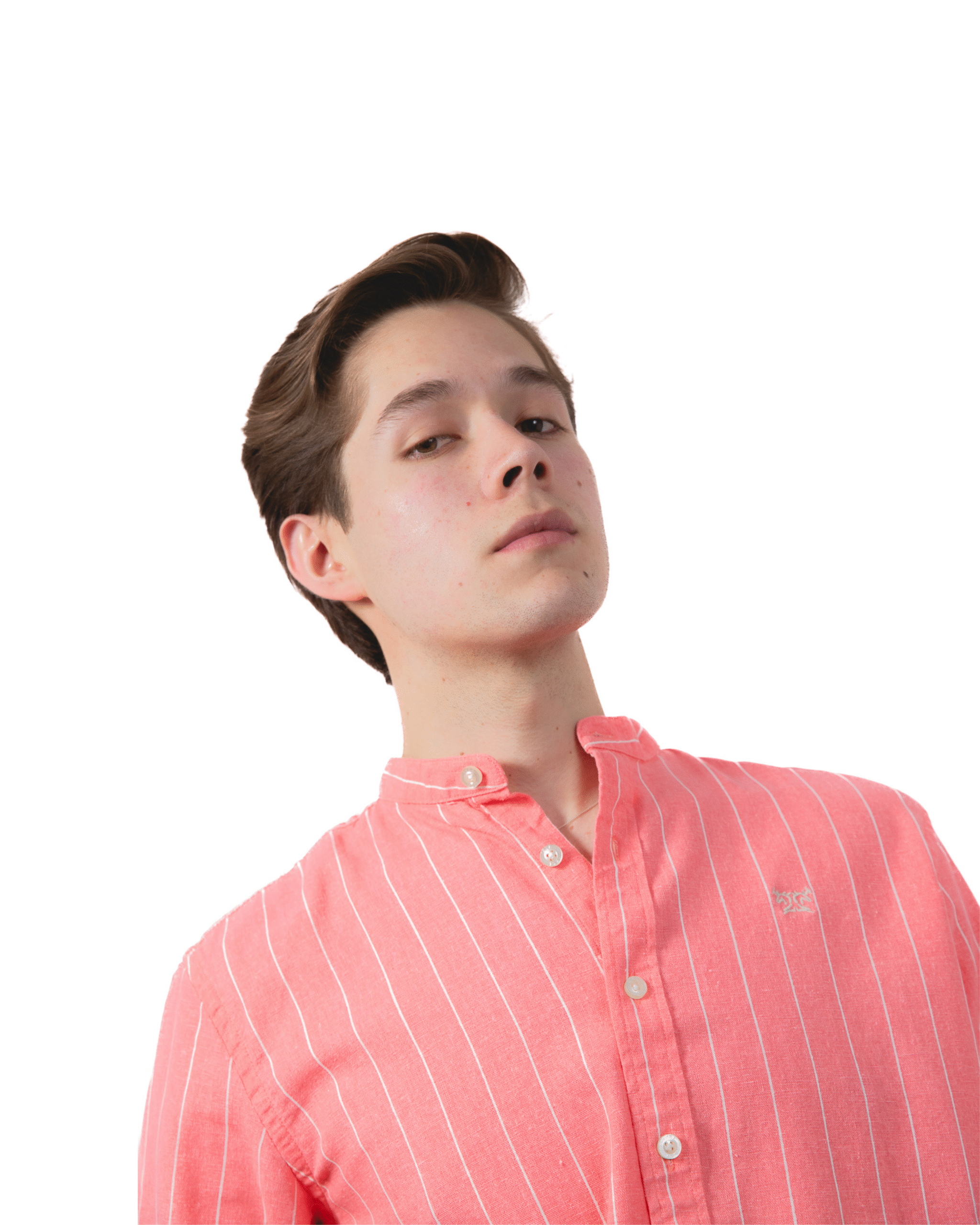 Color: Coral con finas rayas verticales blancas